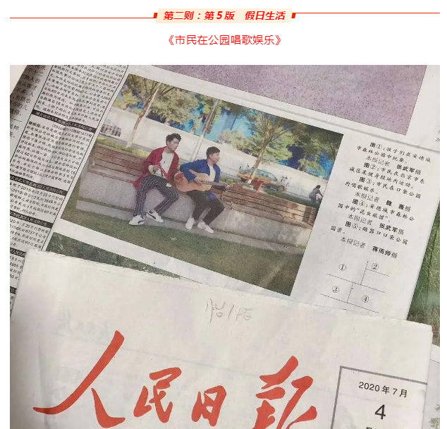 | 2020年7月4日的《人民日报》,在第6版《要闻》和第5版《假日生活》分别刊登了两则图片新闻,都和吉他有关?!没错!